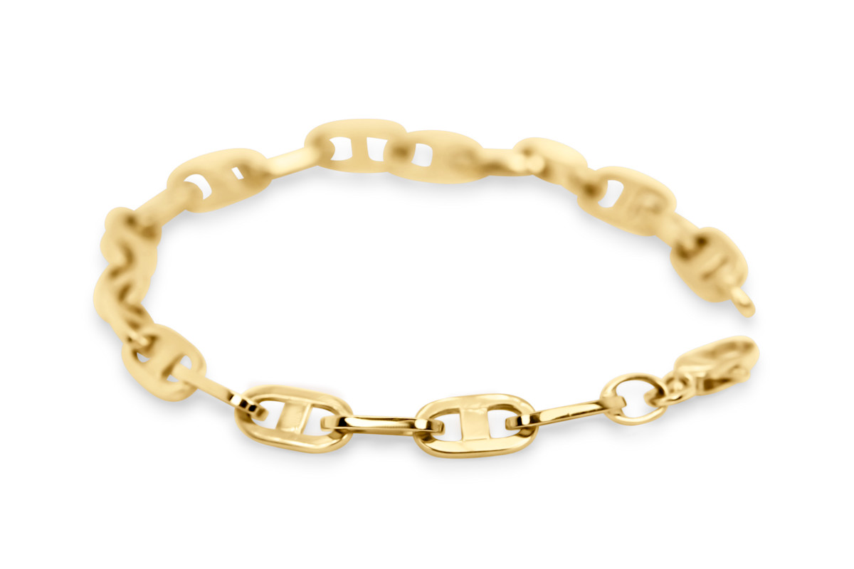 Deze elegante armband in 18 kt geel goud is opgebouwd uit afgeronde ovalen schakels die zorgen voor een zachte, vloeiende vorm en een klassieke uitstraling. Het warme geelgoud geeft de armband een luxueuze glans en laat het tijdloze ontwerp helemaal tot leven komen. De ovale schakels zorgen voor een mooi ritme rond de pols en maken deze armband tot een veelzijdig stuk dat zich moeiteloos laat combineren met andere juwelen, of perfect solo gedragen kan worden als subtiele blikvanger.