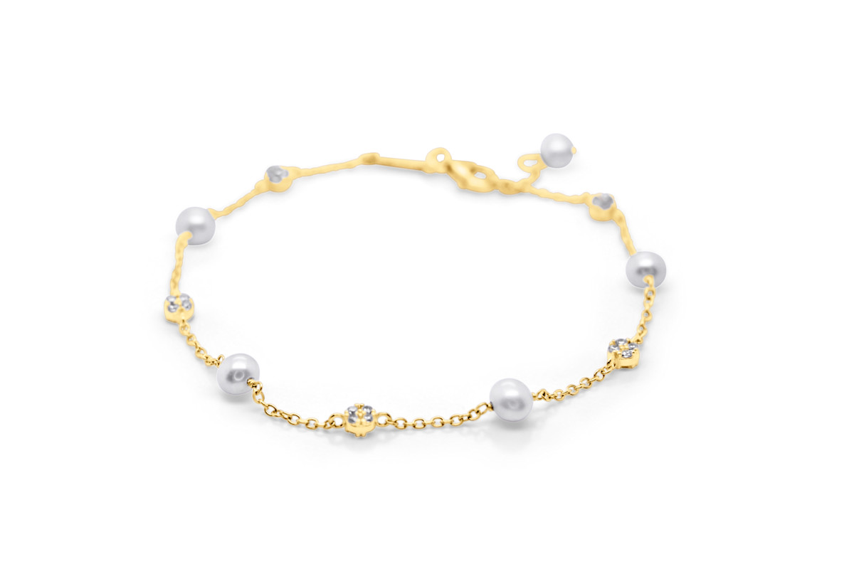 Armband in 18kt geel goud met zirkonium en een pareltjes - B11A11397