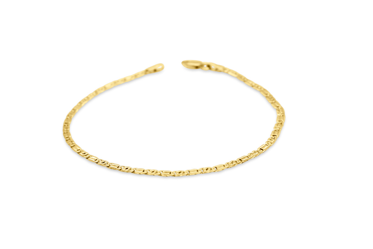 Deze verfijnde armband in 18 kt wit en geel goud is uitgevoerd in een speelse fantasieschakel die elegantie en originaliteit combineert. De schakels wisselen subtiel af in vorm en goudkleur, waardoor het ontwerp een dynamisch en eigentijds karakter krijgt. De combinatie van glanzend witgoud en warm geelgoud zorgt voor een stijlvol contrast dat perfect past bij verschillende andere juwelen, ongeacht hun kleur. Licht om te dragen en toch opvallend in detail – ideaal voor wie houdt van iets anders dan klassiek.