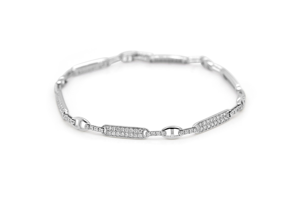 Armband in 18 kt goud, volledig bezet met briljant – pure schittering rondom Deze uitzonderlijke armband in 18 karaat goud is volledig rondom bezegeld met briljant, wat zorgt voor een ononderbroken lijn van fonkeling en verfijning. Elk steentje is nauwkeurig gezet om maximale lichtreflectie te garanderen, waardoor deze armband een schitterende blikvanger is bij elke beweging. Het tijdloze design maakt dit sieraad geschikt voor zowel bijzondere gelegenheden als elegante dagelijkse draagmomenten. Een stuk dat klasse uitstraalt – tot in het kleinste detail. De armband is 18cm lang