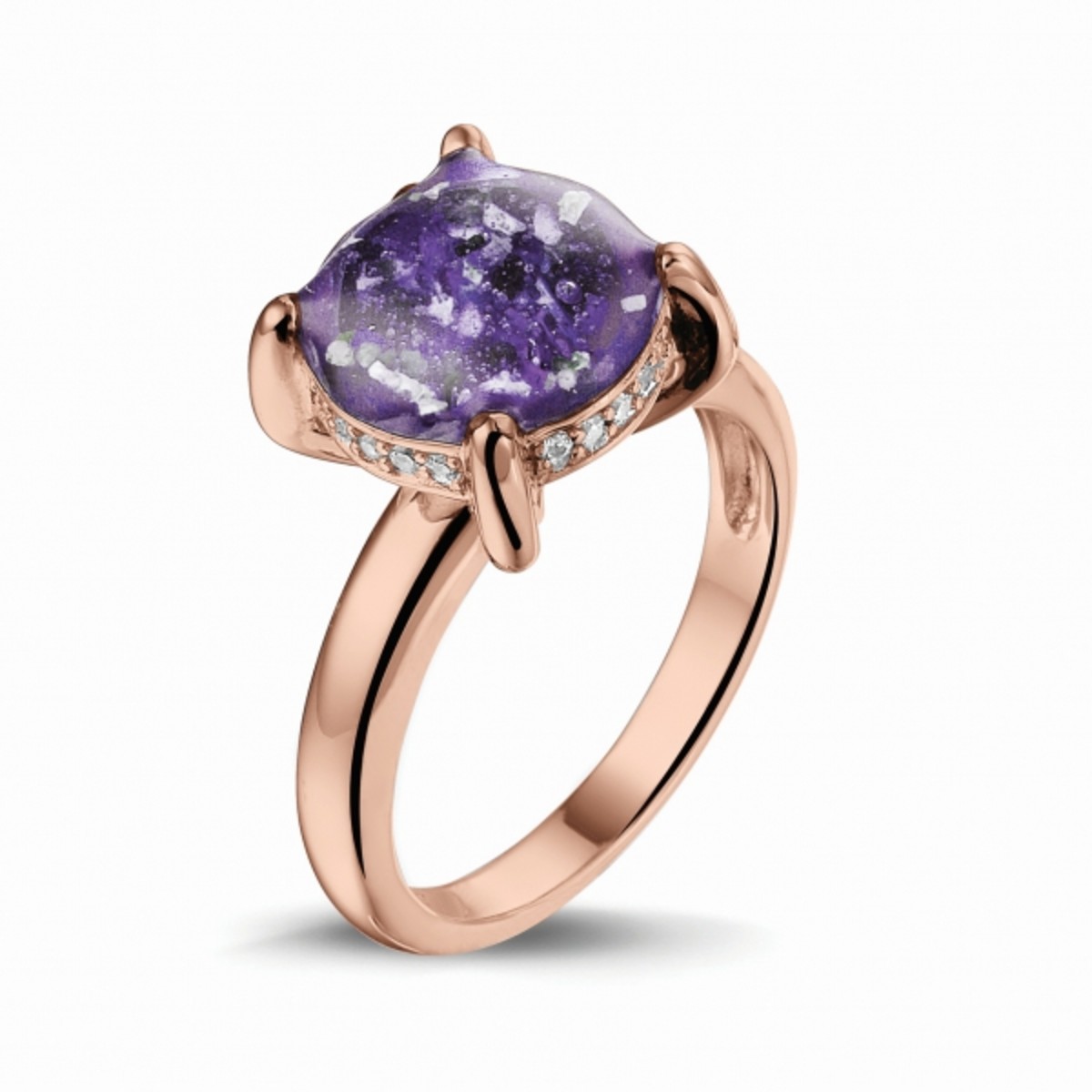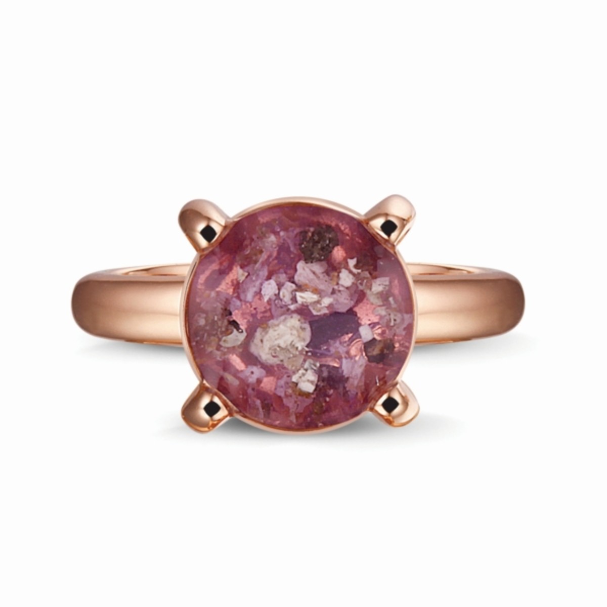 14 Krt rosé gouden ring gezet met diamant. Dit sieraad wordt zichtbaar aan de voorkant gevuld met as en wordt vermengd met onze speciale hars. U kunt dit niet zelf vullen. Afmetingen: 3 mm breed kop van ring: diameter van 11 mm Dit juweel is ook verkrijgbaar in: Zilver 9Kt - 14kt - 18kt geel wit of rood goud De prijs vermeld op de site is voor 14kt rood goud met diamant. Deze modellen zijn steeds op bestelling.