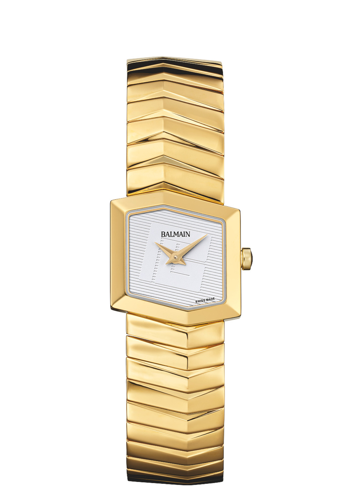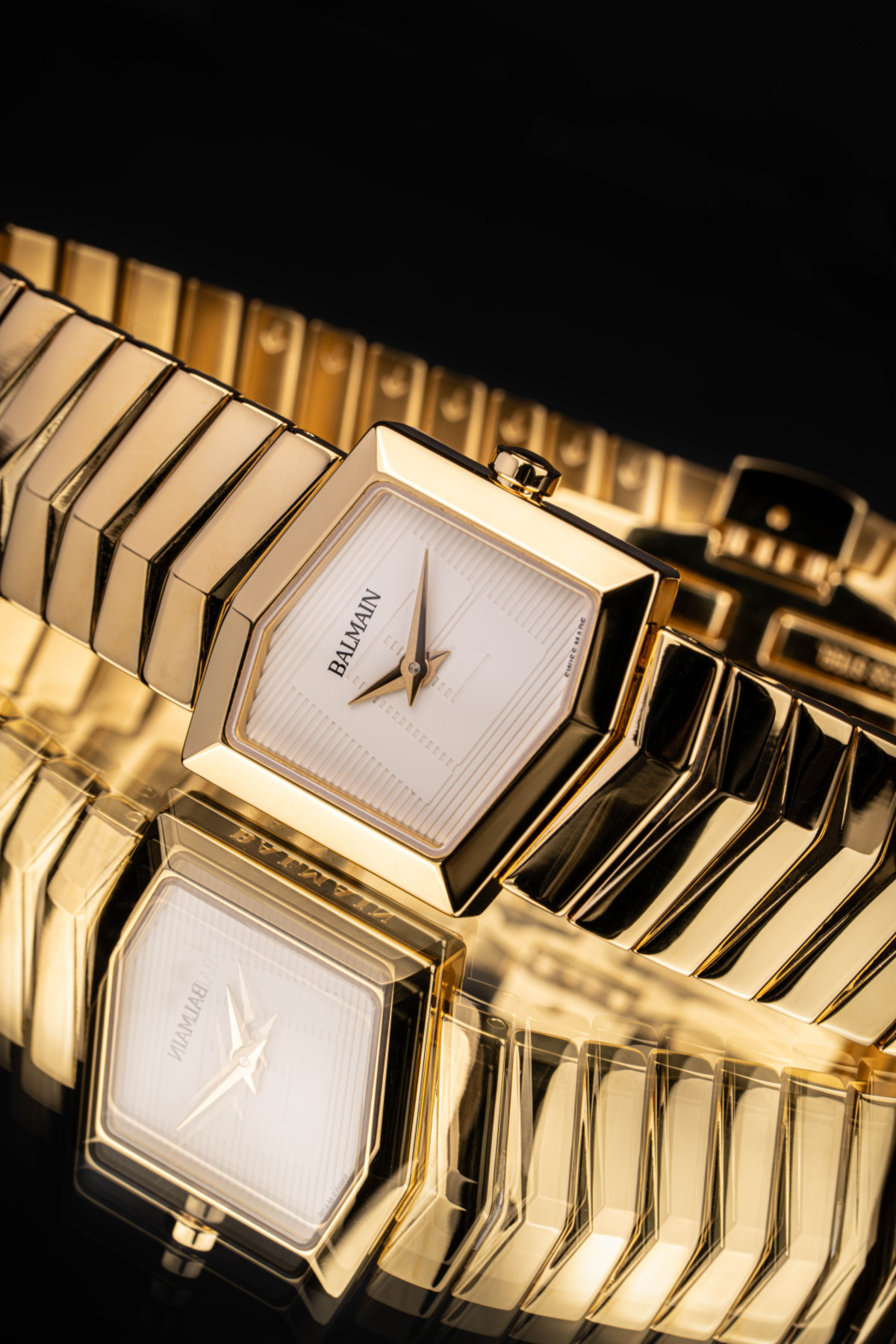 Balmain horloge – nieuwe lijn, unieke vormgeving en Zwitserse perfectie Dit horloge uit de nieuwe collectie van Balmain straalt pure klasse en karakter uit. Met zijn unieke vormgeving onderscheidt het zich moeiteloos van de massa – elegant, verfijnd en toch resoluut eigentijds. De kast is afgewerkt met hoogwaardig saffierglas, krasbestendig en kristalhelder, wat de luxe uitstraling extra versterkt. Binnenin tikt een Zwitserse precisie-uurwerk, het hart van de gekende kwaliteit waarop je kan vertrouwen. Balmain combineert in dit ontwerp moeiteloos modegevoel met technische verfijning. Een stijlvol statement voor wie op zoek is naar een horloge dat opvalt door vorm én inhoud.