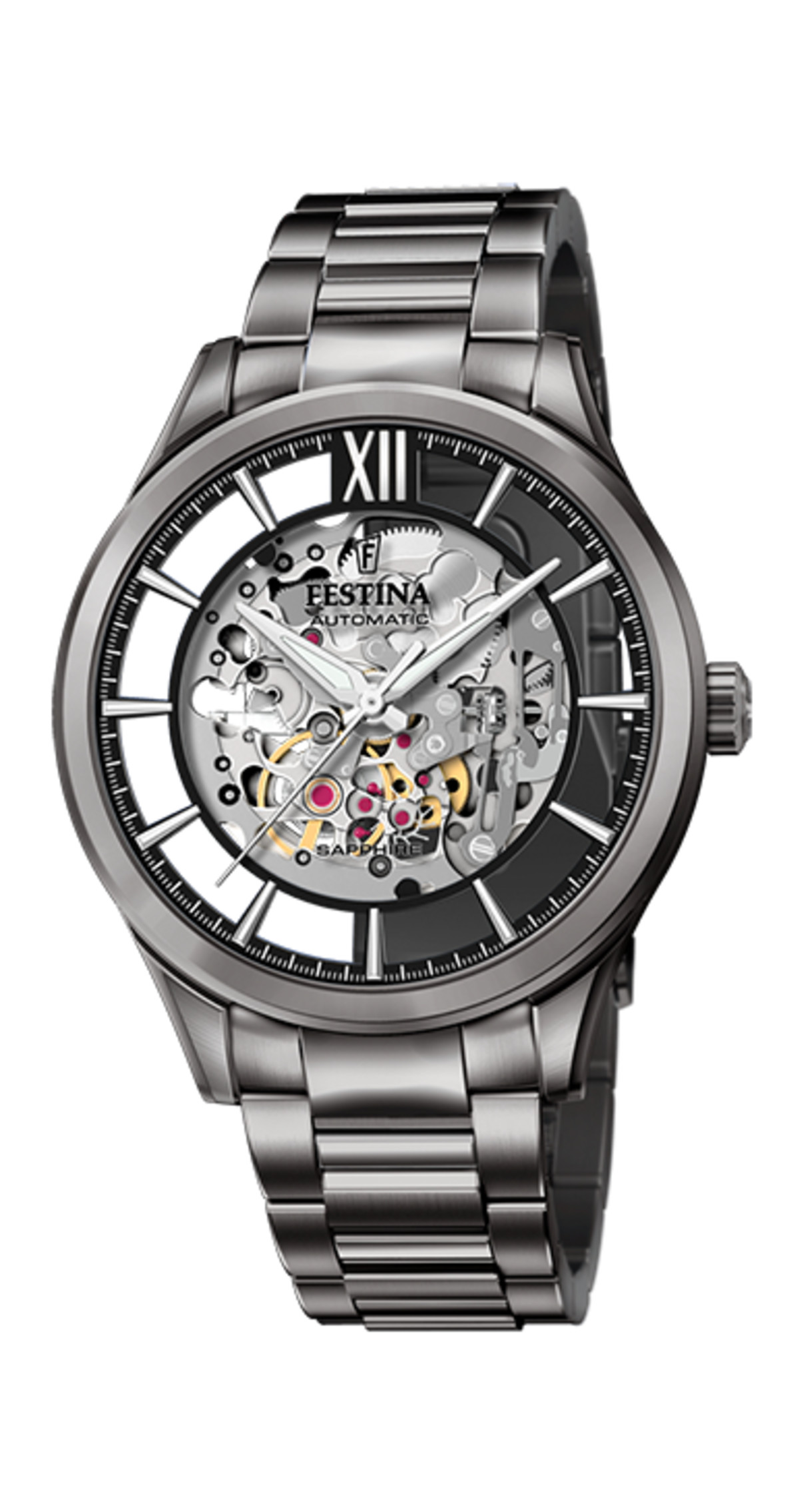12, Horloges Heren Jongeren Festina Automatische uurwerken Staal met grijs PVD Klapsluiting Rond 5 ATM Mineraal glas Festina - herenhorloge skelet automatisch - F20632/1