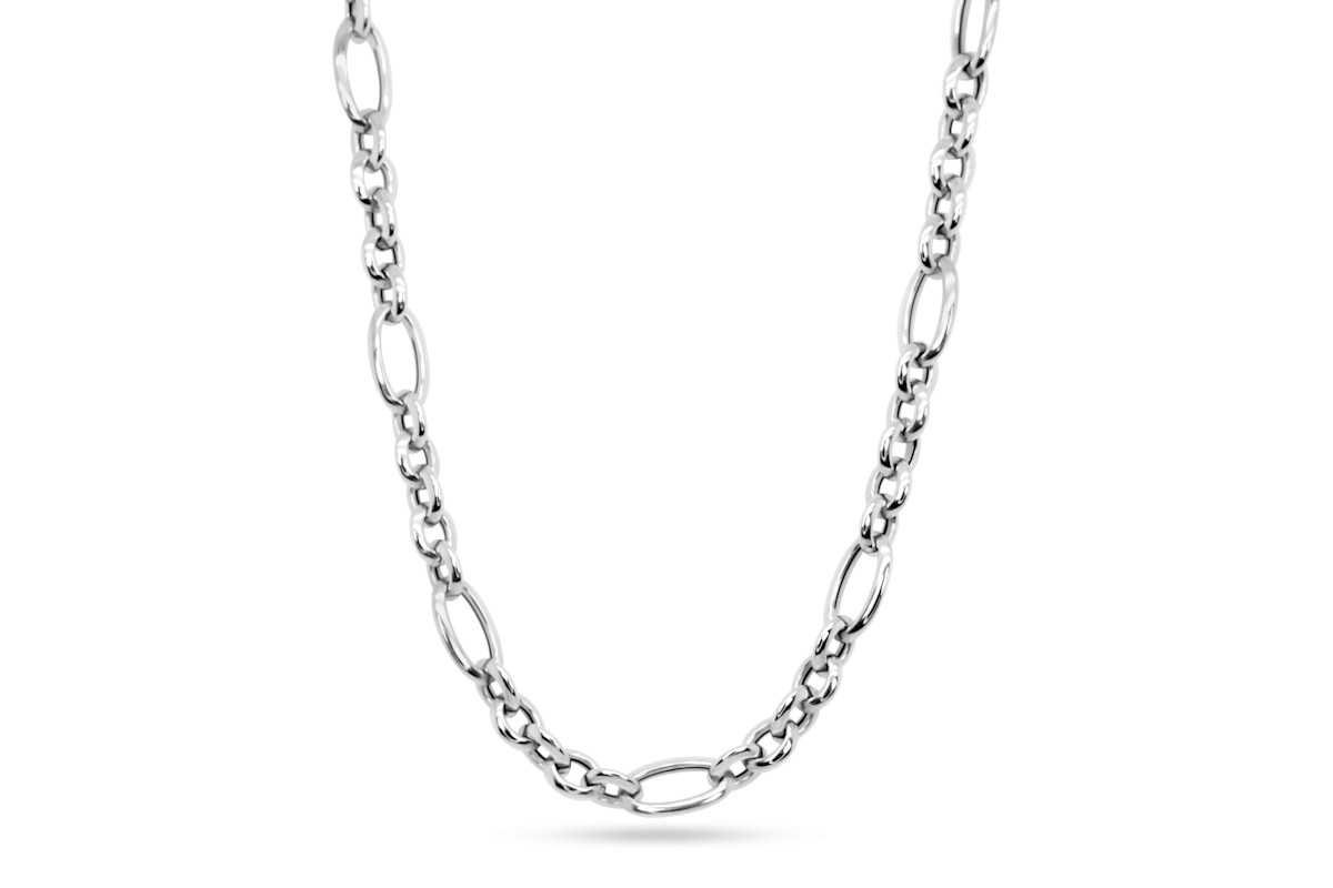 Dit elegante collier in 18 kt wit goud is opgebouwd uit afgeronde ovalen schakels, die zorgen voor een zachte, vloeiende vorm en een tijdloze uitstraling. De schakels zijn perfect in balans: stevig genoeg om karakter te tonen, maar verfijnd genoeg om elegant te blijven. Dankzij het hoogglanzend wit goud krijgt het collier een heldere, luxueuze glans die mooi oplicht op de huid. Dit ontwerp laat zich makkelijk combineren met andere juwelen, maar komt ook solo volledig tot zijn recht.