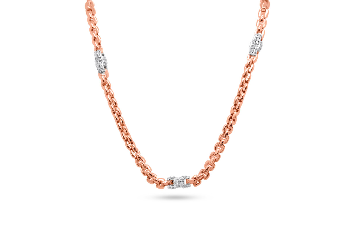 Collier in rosékleurig zilver met zirkonium ook de bijpassende armband is verkrijgbaar. De collier is 45cm lang.