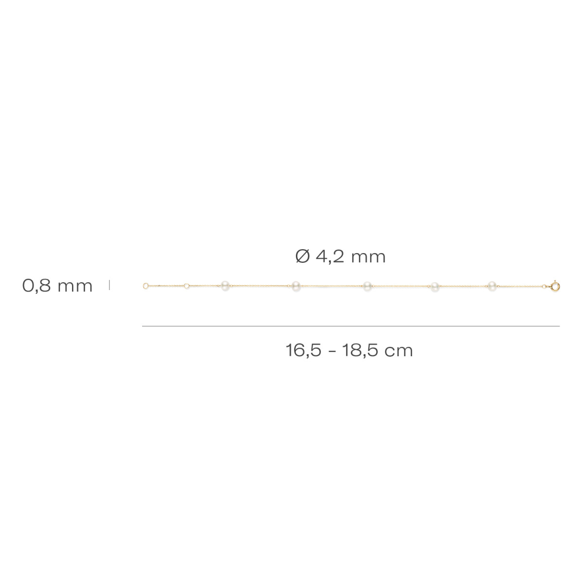 Never change a beautiful classic. Deze 14 karaats gouden armband is een combinatie van een fijne schakel met een wit, zacht glanzende zoetwaterparel met een doorsnede van 4,2mm. Kies ervoor om de armband te combineren met onze andere parelsieraden of maak het meer modern door te combineren met andere items uit onze collectie. Blush Jewels worden geleverd in een Blush cadeauverpakking. From the heart - Wear your Blush