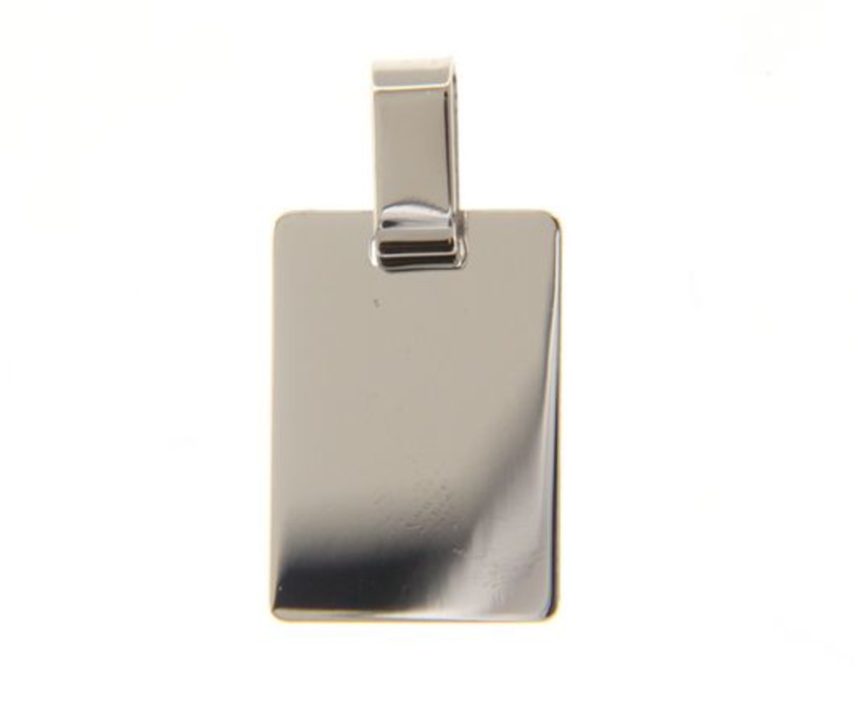 Hanger in 18kt wit goud plaatje is 14x20mm zonder beugel.