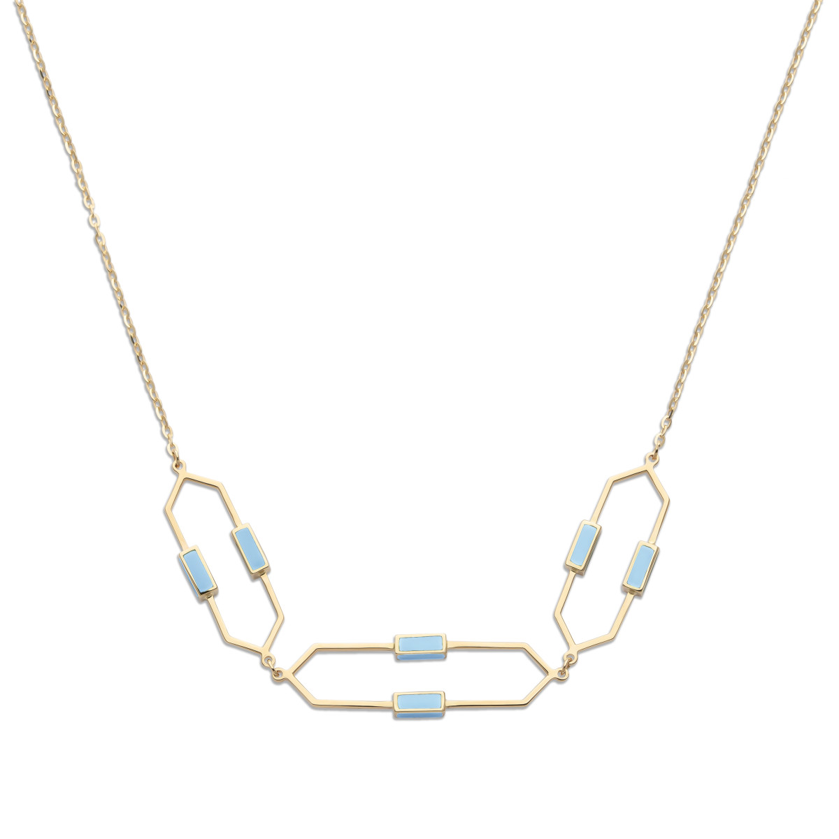 Ketting 14kt geel goud met 3 stukjes fantasie licht blauwe emaille - 45cm - model 47/1