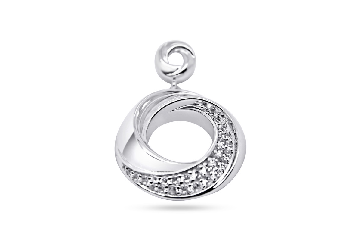 Hanger in zilver met zirkonium, de hanger is 3.5cm lang en 2.5cm breed op het breedste punt.