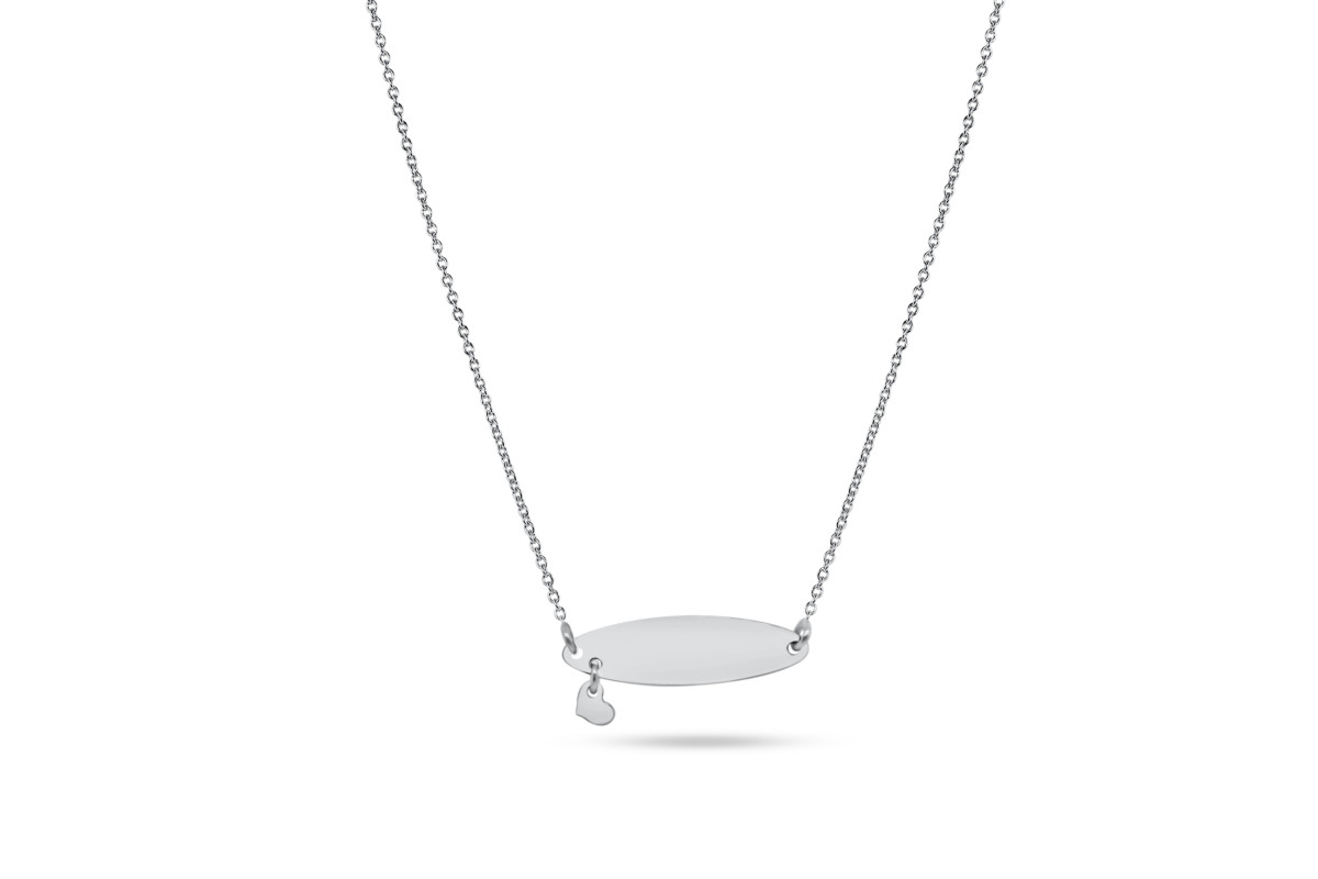 Ketting 18kt wit goud met graveerplaatje - tussenoog op 43cm - lengte 46cm