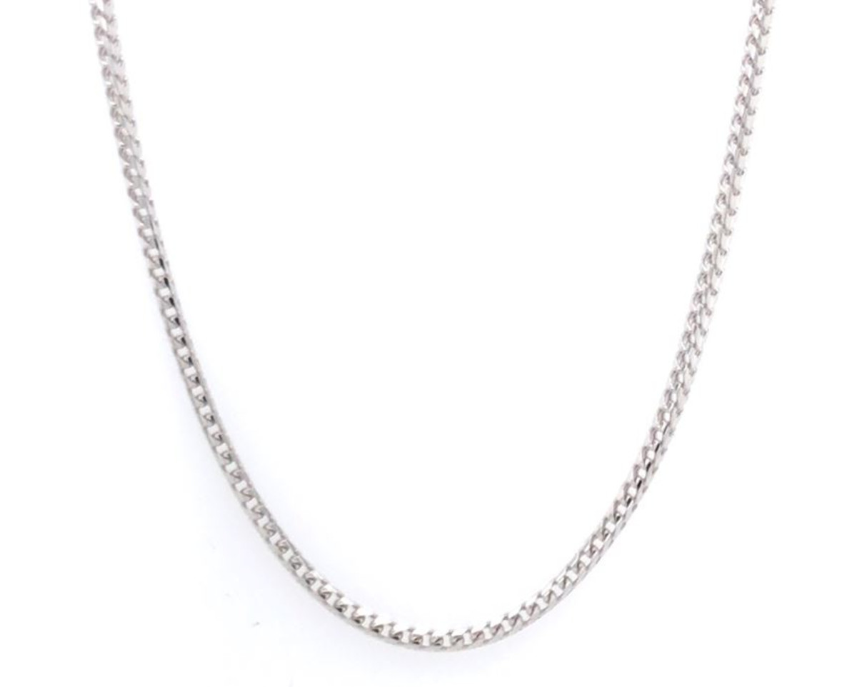 Halsketting op 50cm in 18kt wit goud , francoschakel. De schakel is ongeveer 1.23mm breed en is afgewerkt met een cartierslot.