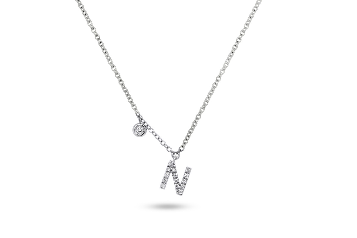 Giorgio Visconti - ketting met letter N - 18kt wit goud met briljant - GB39051N - 42cm