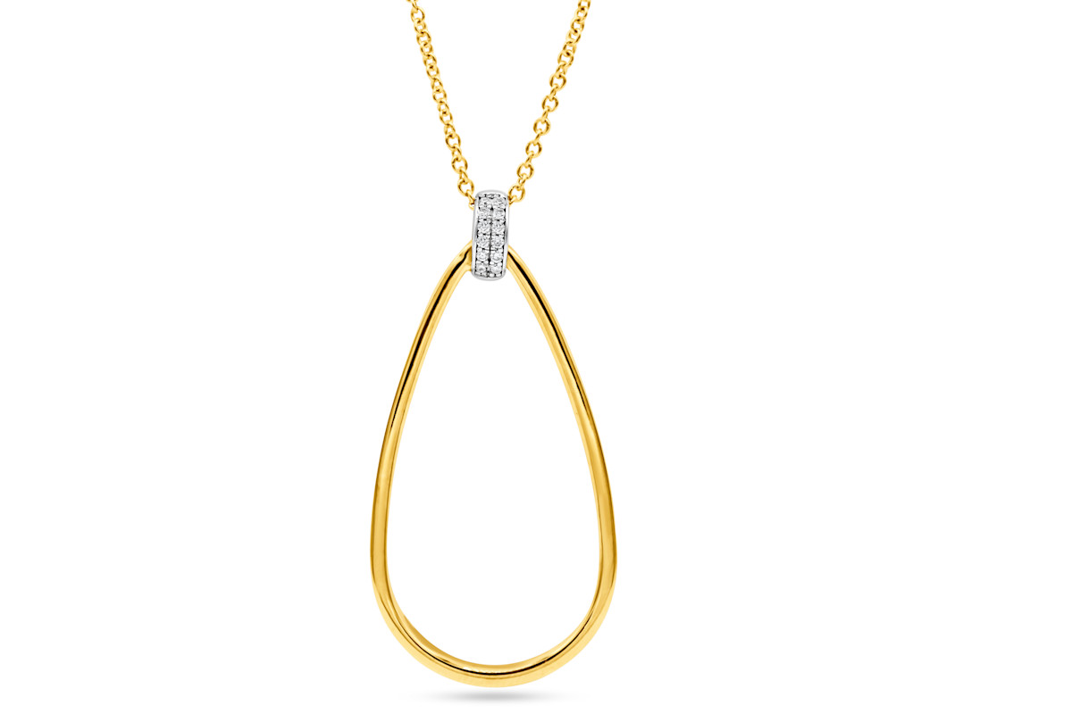Halsketting met hanger in 18kt geel goud met een blokje wit goud die bezet is met briljant.
