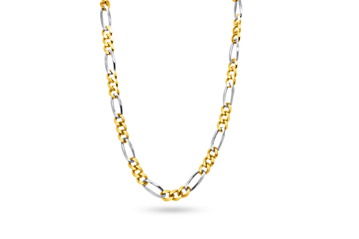 Herenketting 18kt geel goud bi-color - figaroschakel - 50cm