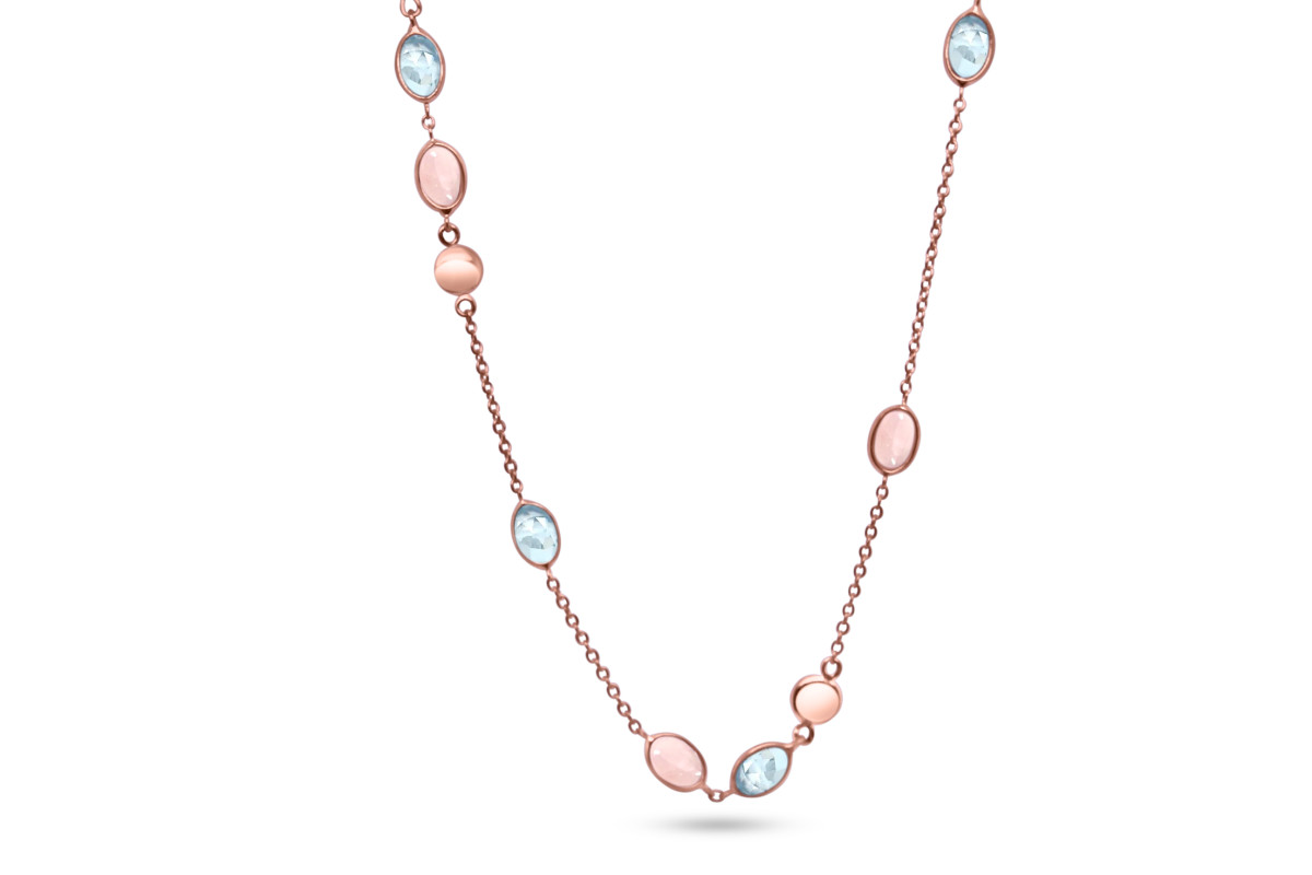 Ketting 18kt rood goud met rozequartz en blauwe topaas - 11C11094/2 - 42/45cm