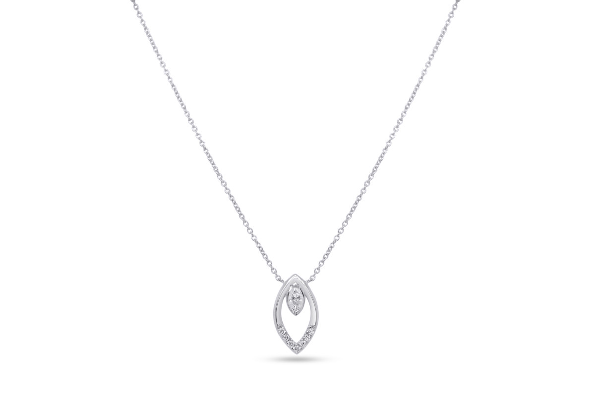 Halsketting met vaste hanger in 18kt wit goud met briljant,de ketting is 45cm lang met een tussenoog op 42cm