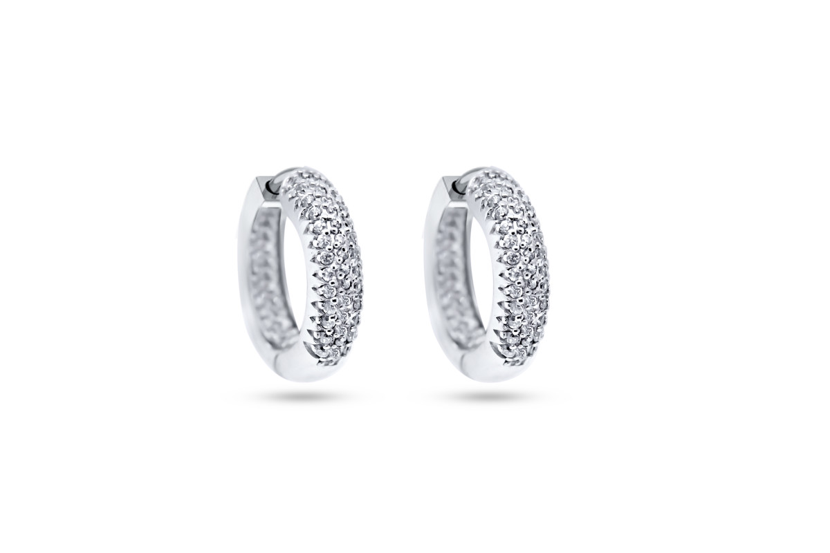 Creolen in zilver met zirkonium, de creolen zijn 5mm breed en hebben een buitendiameter van ongeveer 18.8mm.