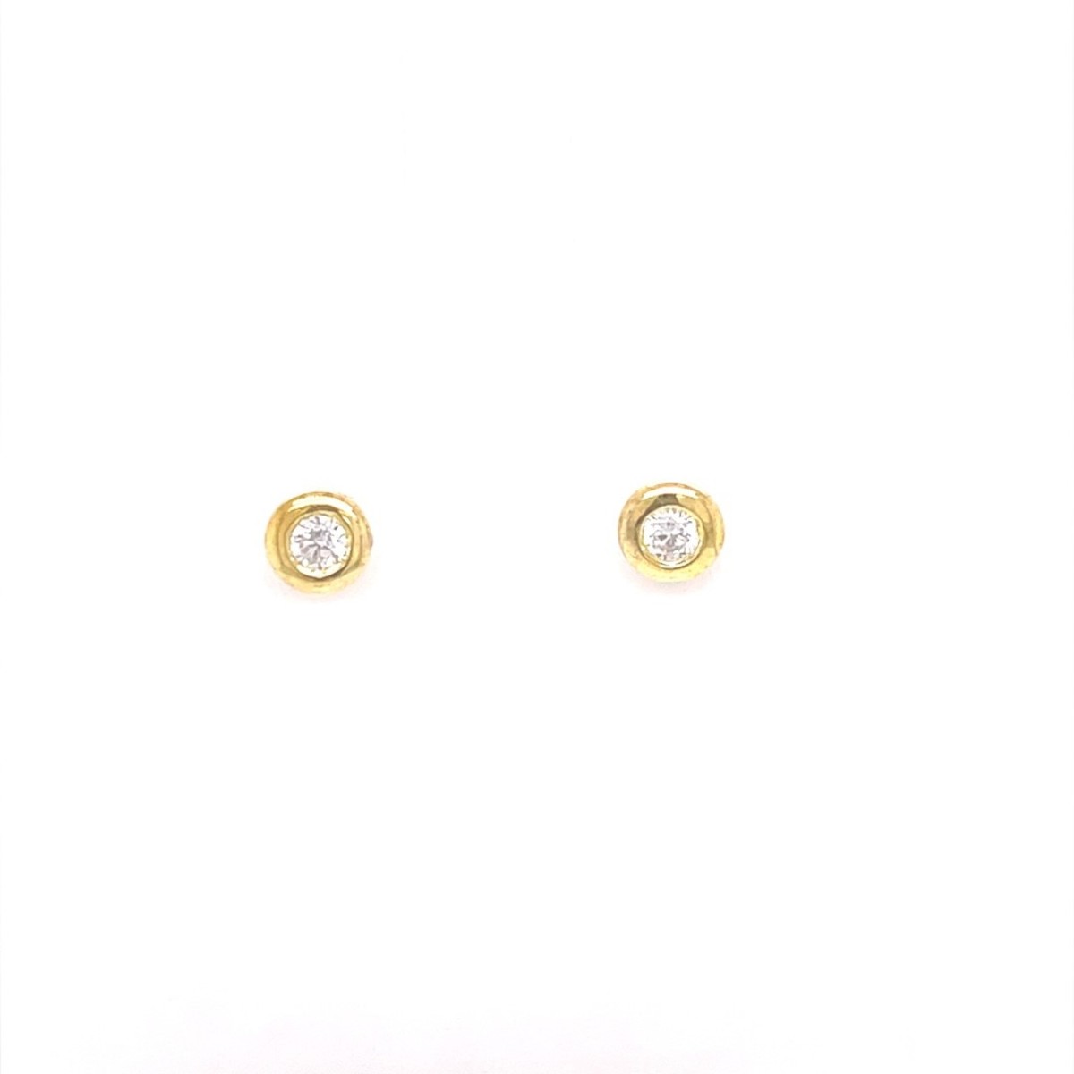Oorknop in goudkleurig zilver met 1 zirkoniumsteentje, het potje heeft een diameter van ongeveer 5mm.