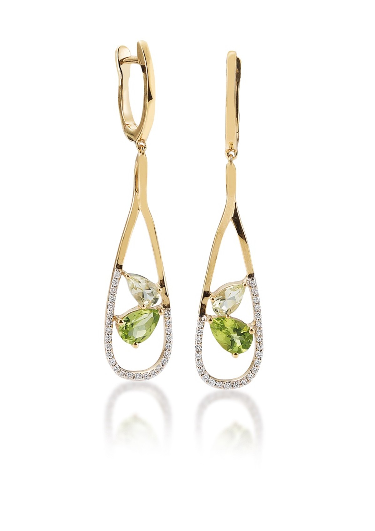 Oorhangers in 18kt geel goud met peridot en lemon quartz en briljant - 06-31861