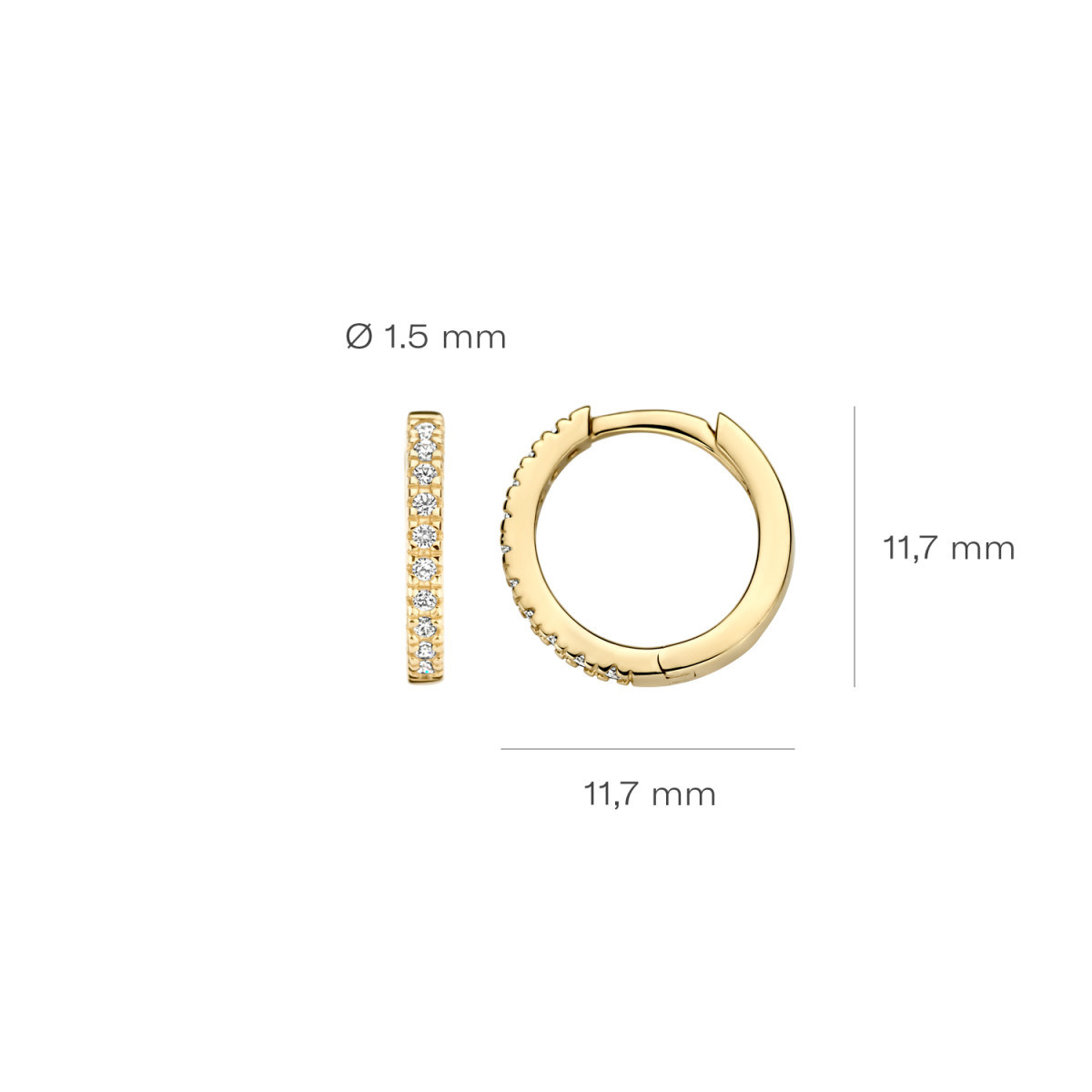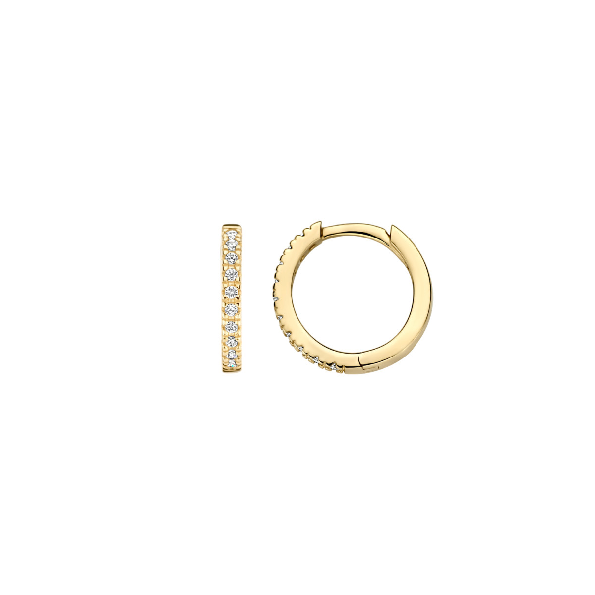 Alle sieraden van Blush zijn met aandacht en liefde gemaakt van 14k goud - geel, ros? of wit. Hoge kwaliteit waarvan je jarenlang plezier hebt staat bij ons voorop net als de mogelijkheid om eindeloos te mixen en te matchen. Een sieraad van Blush is een cadeau voor jezelf of een ander en komt daarom altijd in een cadeauverpakking. Diameter: ? 1.5 mm Lengte: 11.7 mm Type goud: 14k Geel goud Type sluiting: Kliksluiting Type steen: Zirkonia Zetting: Pave zetting