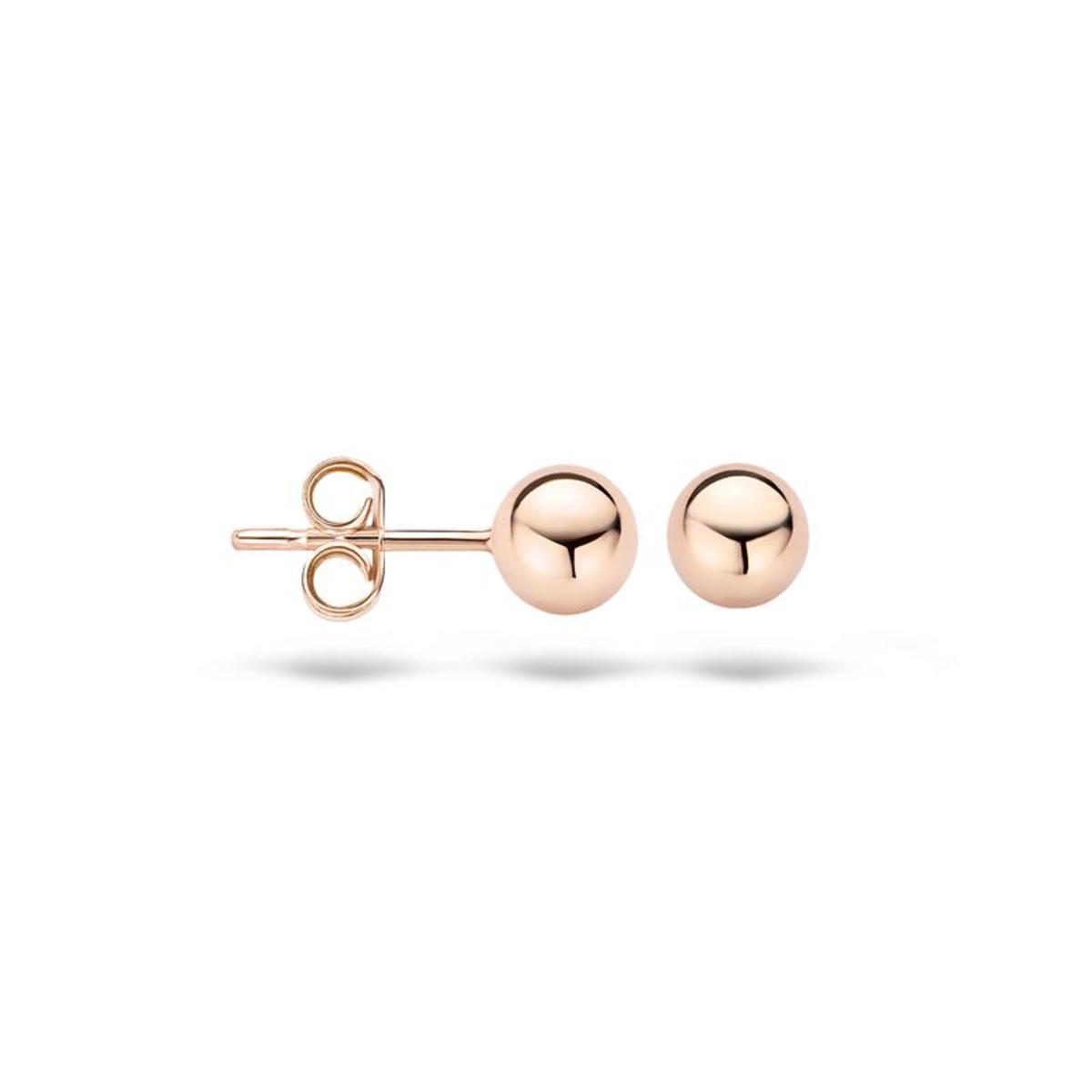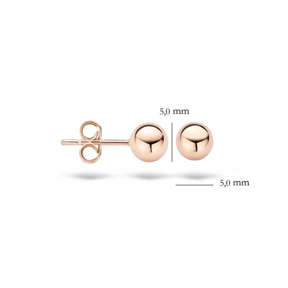 Perfect basics??? Even tijdloos als trendy zijn deze bolvormige rosé gouden oorstekers. De diameter van de bol is 5 millimeter. Deze oorbellen draag je bij elke gelegenheid en zijn eindeloos te combineren. Voor een klassiek-elegante look draag je ze solitair. Draag je graag meerdere oorsieraden gelijktijdig dan zijn deze rosé gouden oorknopjes perfect basics die moeiteloos matchen bij je andere favoriete oorbellen.