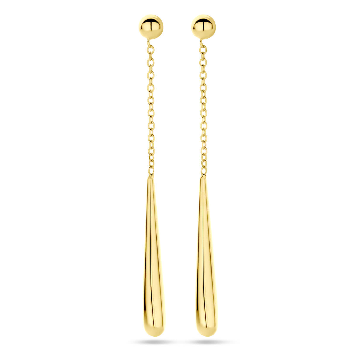 18k Geelgouden oorhangers uitgevoerd met een druppel. De oorhangers hebben een afmeting van 25x3.8mm.