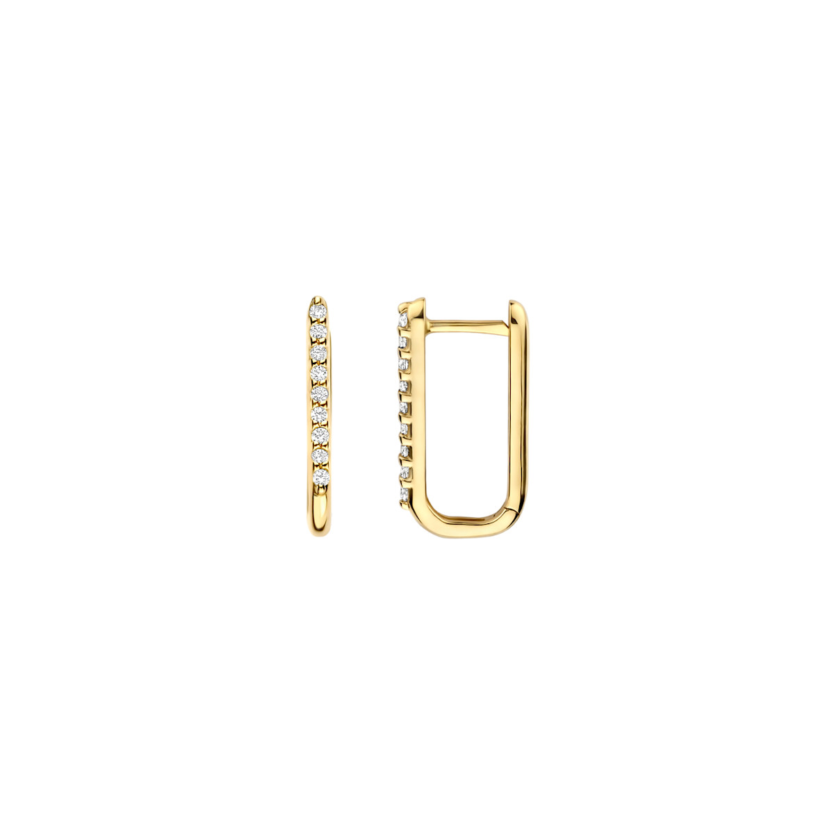 Ontdek deze prachtige oorringen, vakkundig vervaardigd uit 14k goud. Je ziet hoe de langwerpige vorm elegantie uitstraalt. Elke oorring is voorzien van schitterende zirkonia's, zorgvuldig gezet in een pavé-zetting, met een subtiele breedte van 1.4 mm. Dit geeft jou een verfijnde en moderne touch. Type goud: 14k Geel goud Sluiting: Kliksluiting Type zetting: Pavé-zetting Type steen: Zirkonia Steenkleur: Helder Diameter: 1.4 mm Lengte: 13.3 mm Breedte: 6.9 mm