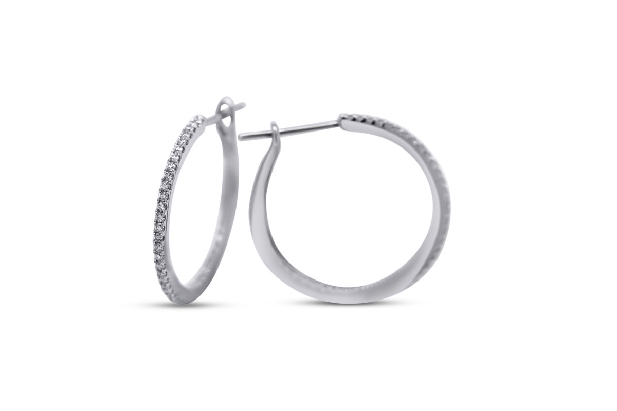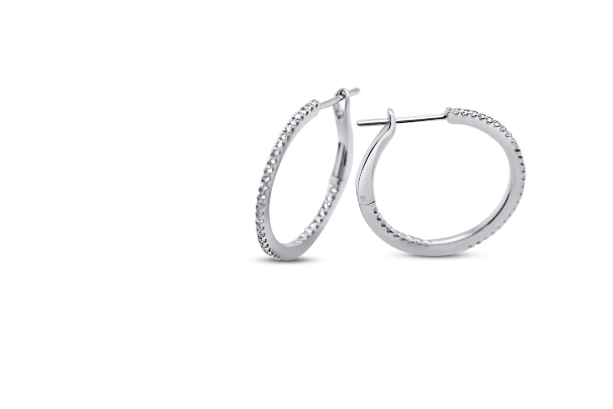 Creolen in 18kt wit goud met briljant, ook in de oorring zijn er briljantjes gezet, dit voor een optimale schittering. Buitendiameter : 19mm breedte : 1.25mm
