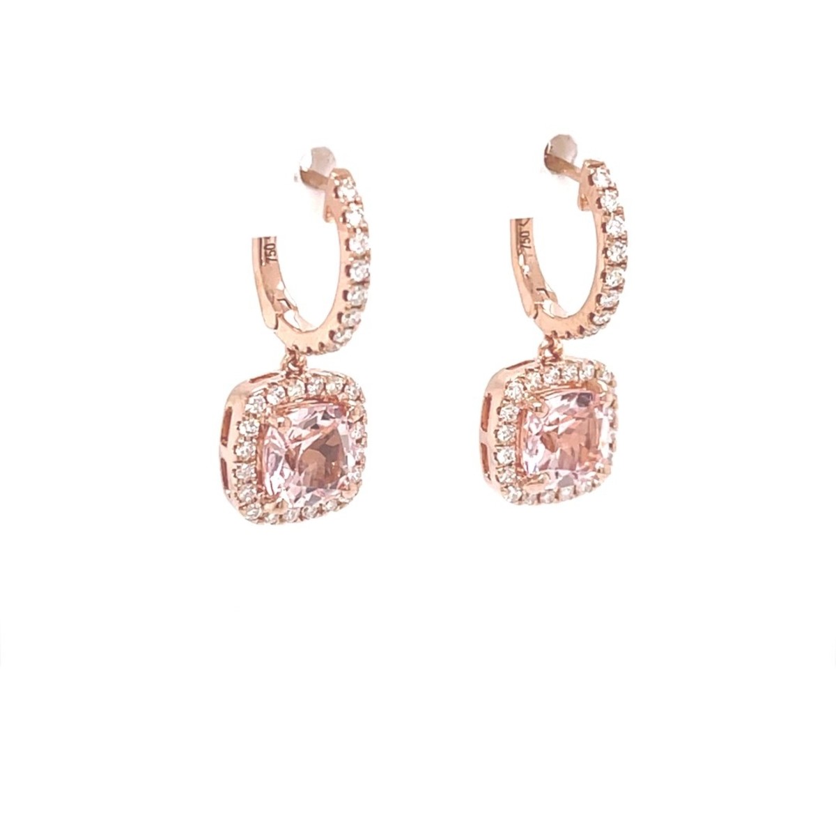 Prachtige oorringen in 18kt rood goud met briljant en morganiet. Wat een perfectie formatie en een intense schittering! Ik ben fan.