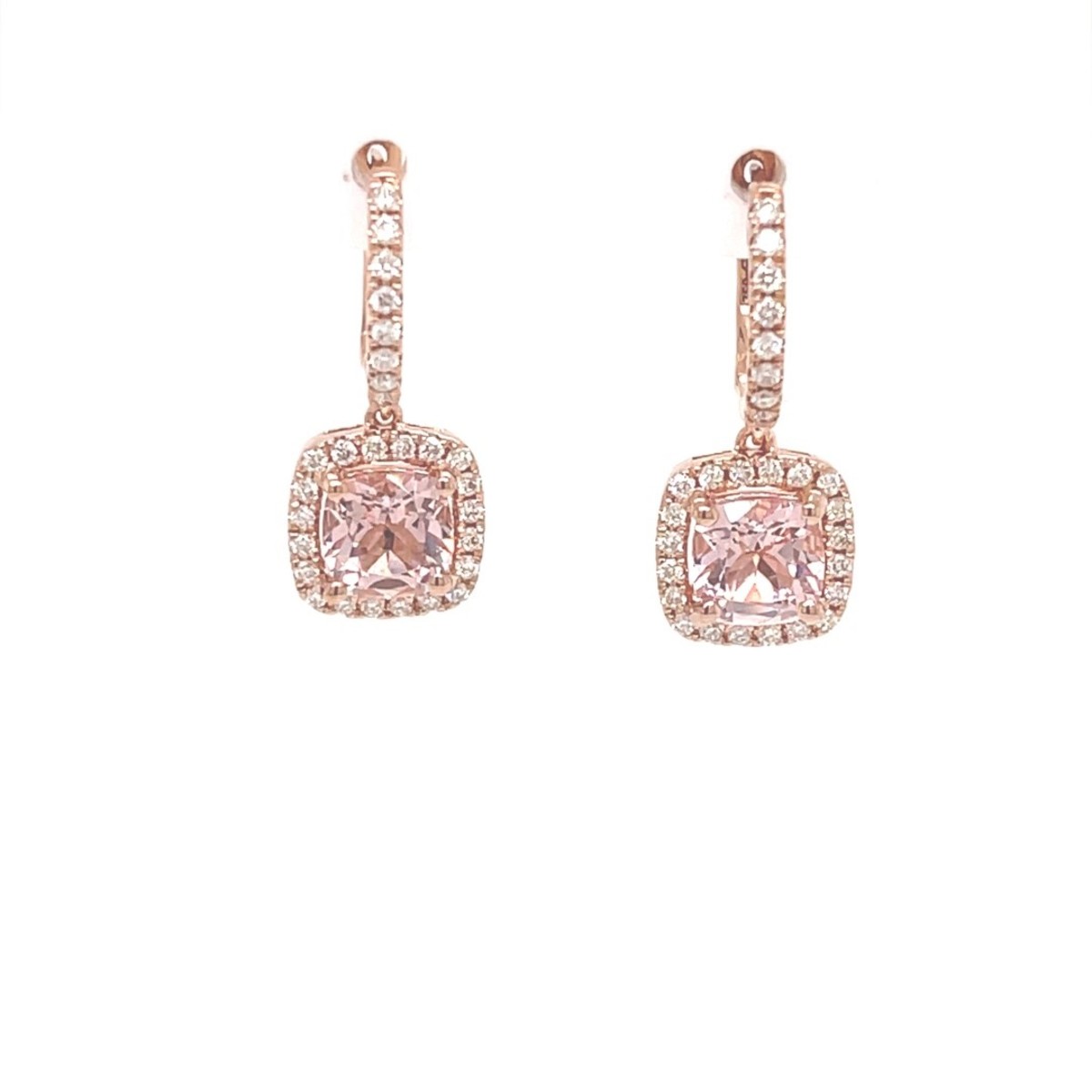 Oorringen 18kt rood goud met briljant en morganite - EX8386