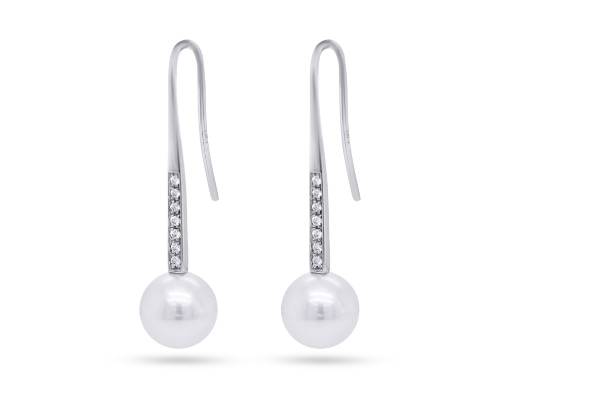 Oorslingers 18kt wit goud met briljant en SWP 9/9,5mm - 38-00017-2275