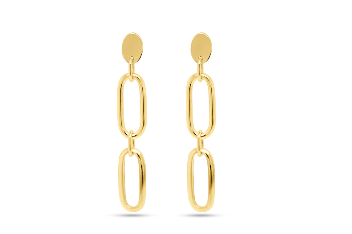 Oorhangers in 18 kt goud met open structuur – luchtig design, tijdloze elegantie Deze verfijnde oorhangers in 18 karaat goud onderscheiden zich door hun open structuur, die zorgt voor een lichte, vloeiende vorm en een elegante beweging bij elke stap. Het luchtige ontwerp geeft deze oorbellen een moderne uitstraling, zonder in te boeten aan klassieke charme. De open vormen vangen subtiel het licht en creëren een sierlijk silhouet langs het gezicht – perfect voor wie houdt van juwelen met een minimalistische look en een verfijnde afwerking. Een stijlvol paar oorhangers dat elegantie ademt – voor wie op zoek is naar een tijdloos ontwerp met een moderne touch. De oorhangers zijn 4cm lang.