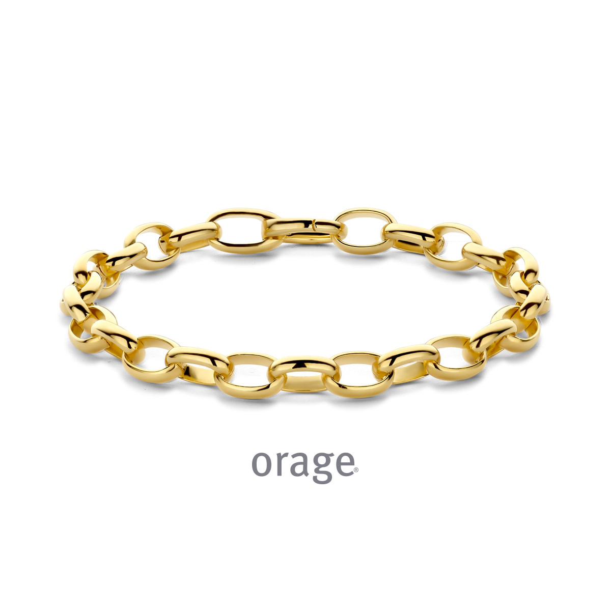 Armband in plaqué or met een ronde schakel waarvan ook de bijpassende collier verkrijgbaar is. Als u de 2 items heeft kan u deze ook aan elkaar haken om zo een langere ketting te hebben.
