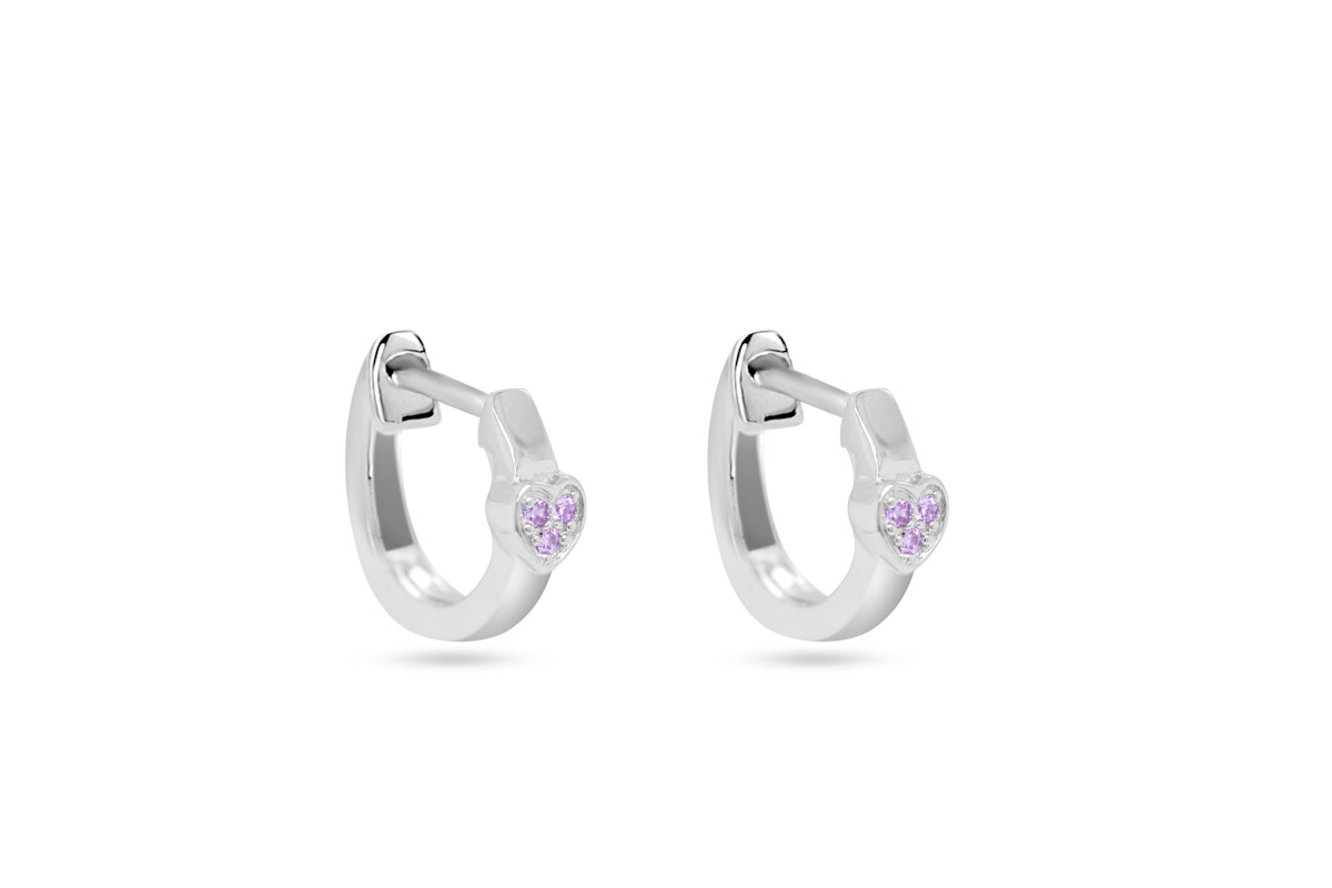 Lief en sprankelend. Deze zilveren creolen met een hartje en roze steentjes geven elke outfit een zachte, elegante touch. Een mooi juweeltje voor elke dag of een lief cadeautje om te geven.