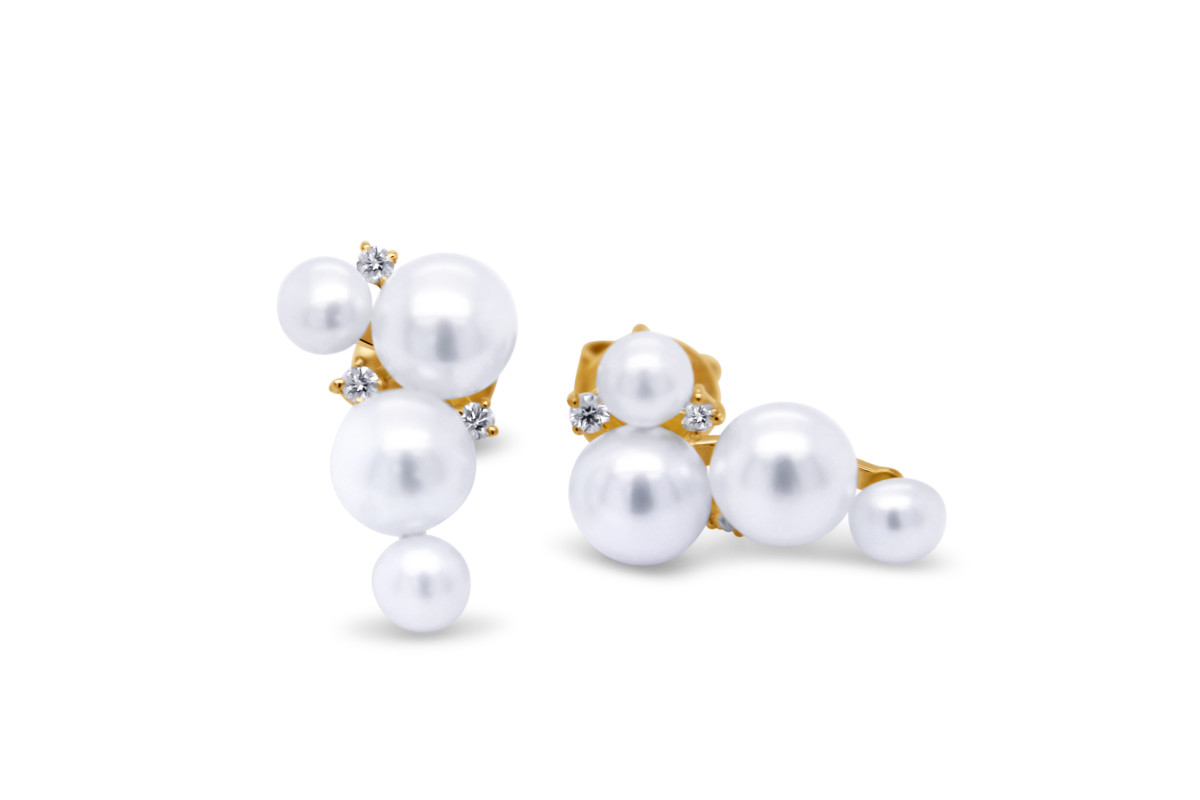 Oorstekers 18kt geel goud met briljant en 4 parels swp - 30-71109-2870