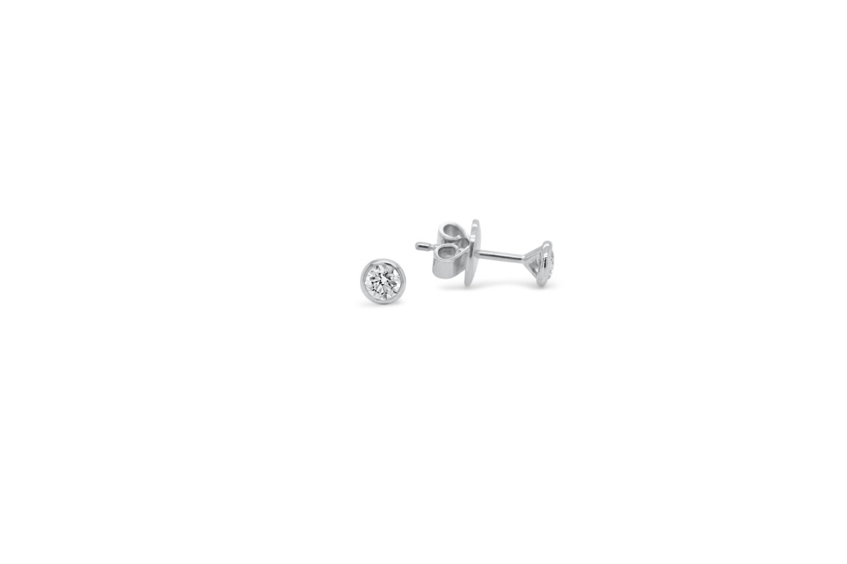 Oorknop in 18kt wit goud met briljant, de oorknop heeft aan elke zijde een 0.125ct briljant die gezet is in een rond potje. De oorring heeft een diameter van 4 mm en is afgewerkt met een poussette.