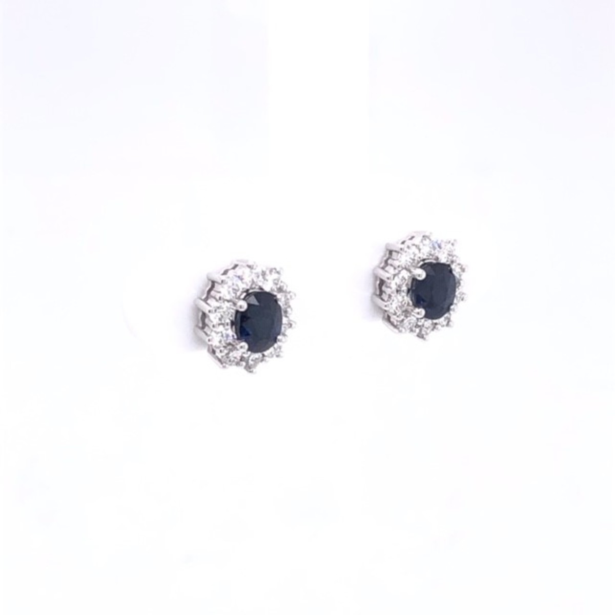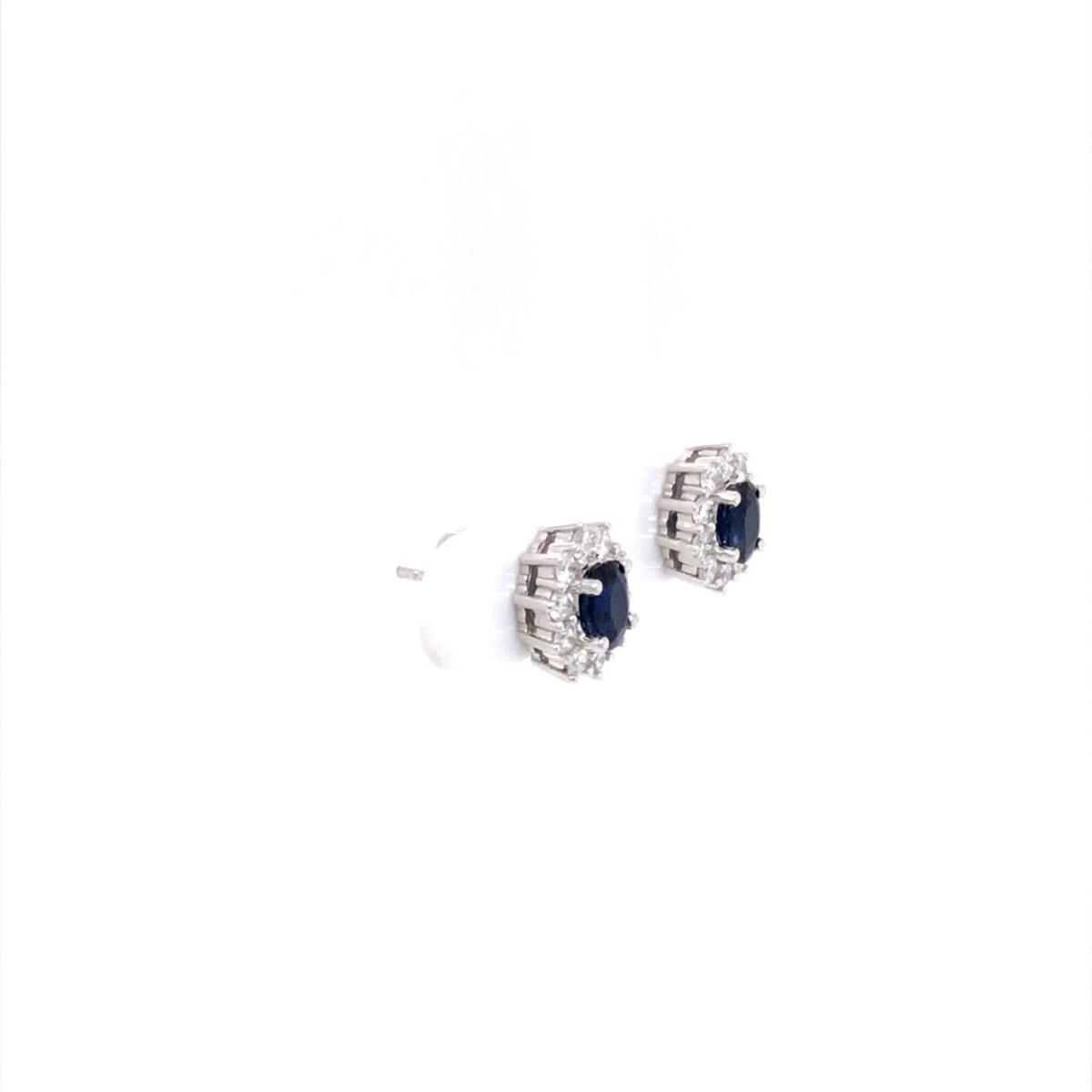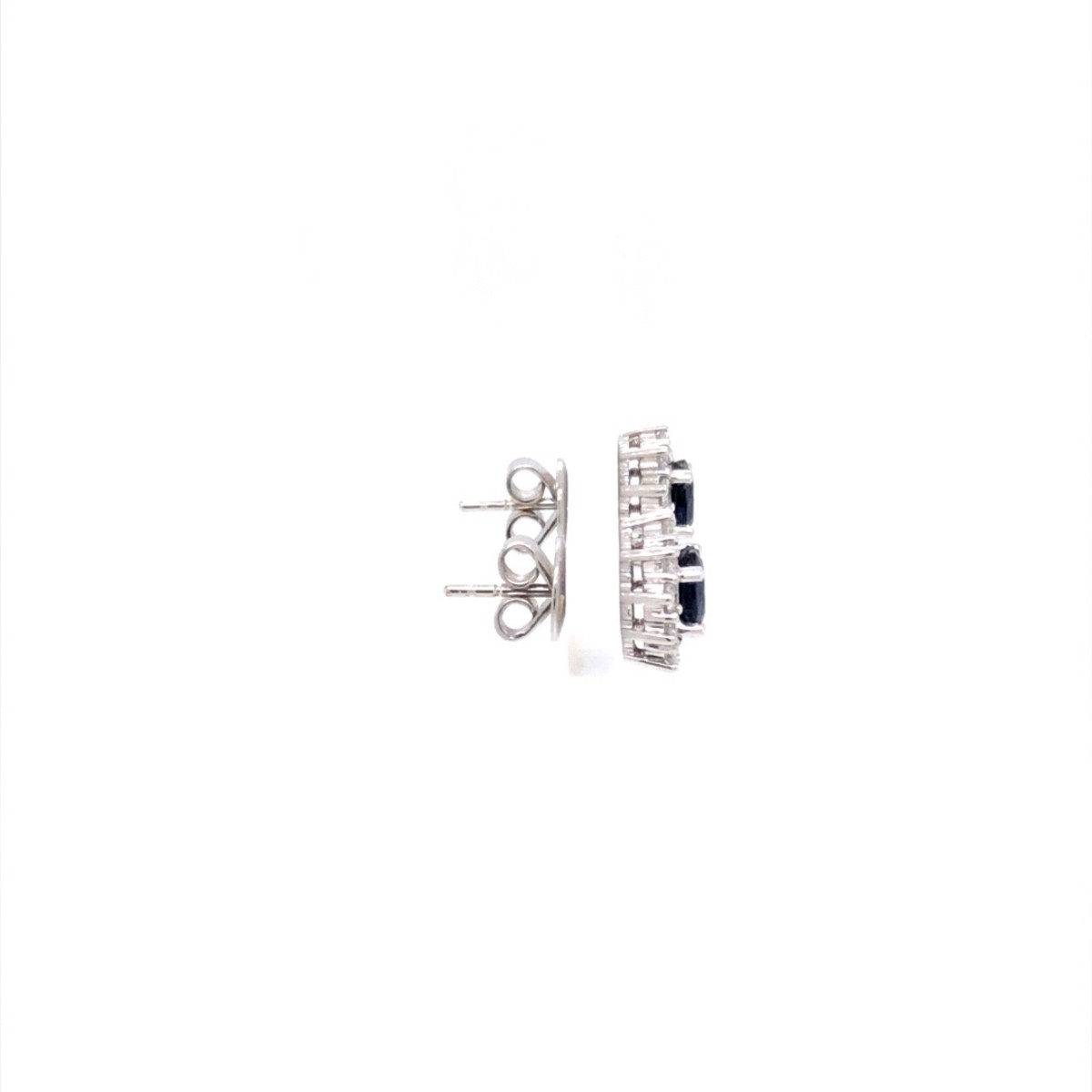 Oorknoppen in 18kt wit goud met briljant en blauwe saffier. Een blijvertje